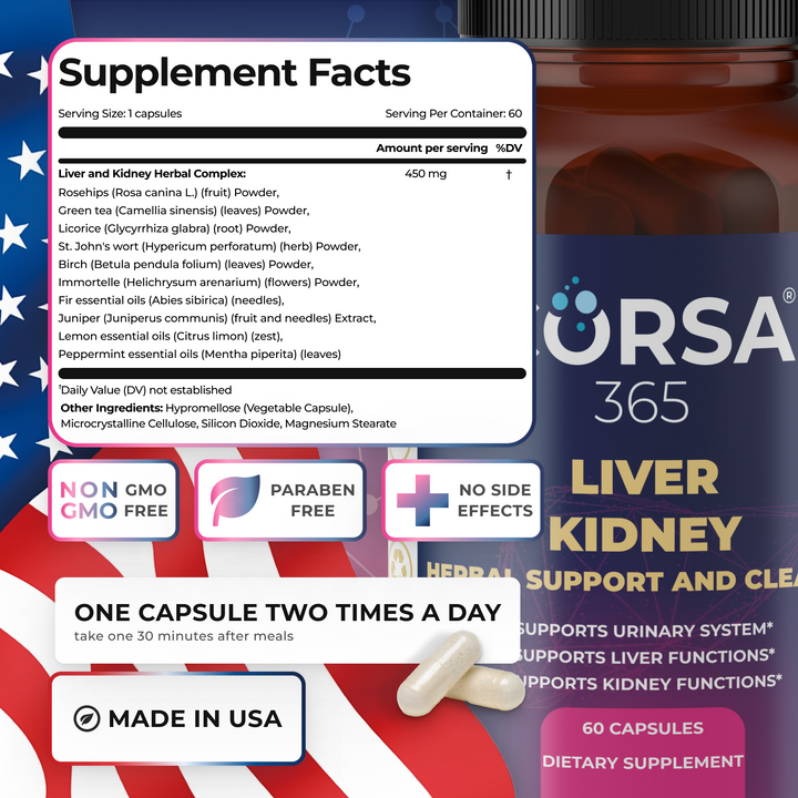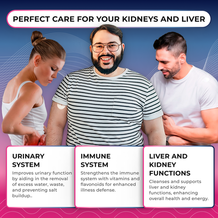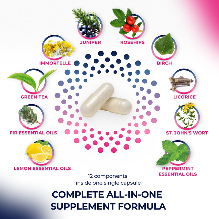 Rosehips, Birch, Juniper: These ingredients are known for their ability to boost immunity, support liver function, and promote kidney health by aiding in toxin removal and guarding against cell damage.